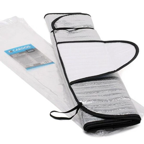 FÜR DEN WINTERDurch die Verwendung der CARDOS Glasmatte vermeiden Sie nicht nur das Problem der Vereisung des Glases, sondern schützen es auch vor Mikrokratzern, die sich bei jedem Kratzen bilden. Wenn es unter die Wischer gelegt wird, friert es diese nicht ein, was ihre Lebensdauer beeinträchtigen könnte. Die CARDOS Windschutzscheibenmatte lässt sich dank der Laschen an den Seiten, die einfach mit der Tür einrasten, einfach anbringen und entfernen.Mit der richtigen Größe können Sie die Windschutzscheibe auch in einem SUV abdecken. Es ist ein Gadget, das für Vielfahrer und das Parken des Autos im Freien notwendig ist, wodurch sie die Zeit reduzieren, die benötigt wird, um das Fahrzeug für die Straße vorzubereiten.Produktmerkmale:Isolierung gegen Glasfrost,universelle Form und Größe passend für die meisten Pkw und Transporter,kann im Sommer als Sonnen- und Hitzeschutz verwendet werden,Schutz der Scheibenwischer vor dem Einfrieren,einfache Montage und Lagerung,Maße: 150 cm x 70 cm,wasserdicht. FÜR DEN SOMMERDie praktische CARDOS Windschutzscheibenmatte ist die perfekte Lösung, um an heißen Tagen den „Ofen“ im Auto zu vermeiden. Es eignet sich perfekt als Sichtschutz bei der Arbeit, wenn das Auto 8 Stunden in der Sonne steht oder im Urlaub, wenn sich ein geparktes Auto den ganzen Tag erhitzt. Die Verwendung einer Sonnenmatte im Sommer senkt nicht nur die Temperatur im Fahrzeug, sondern schützt auch den Innenraum, hauptsächlich das Armaturenbrett und die Sitze, vor aggressiven UV-Strahlen, die zu Verblassen und Rissen führen. Der Einsatz der CARDOS Windschutzscheibenmatte wird den Einsteige- und Fahrkomfort an heißen Tagen deutlich verbessern, da Lenkrad und Sitze nicht heiß werden.Die CARDOS Windschutzscheibenmatte lässt sich dank der seitlichen Laschen, die mit der Tür einrasten, einfach montieren und demontieren und dank praktischer Gummibänder auch verstauen. Mit der richtigen Größe können Sie die Windschutzscheibe auch in einem SUV abdecken. Es ist ein unverzichtbares Gadget für Vielreisende und diejenigen, die ihr Auto draußen parken.Produktmerkmale:Isolierung gegen Aufheizung in der Sonne,universelle Form und Größe,Ganzjährige Nutzung,einfache Montage und Lagerung,wasserdicht,Maße 150 x 70 cm.