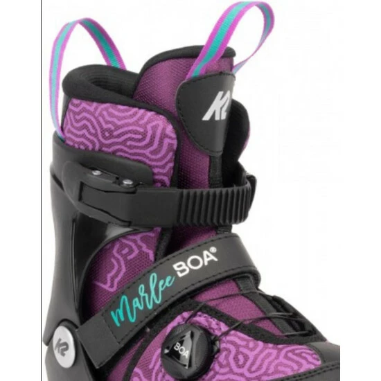 Die Inliner MARLEE BOA” aus dem Hause K2 begeistern nicht nur mit ihrem tollen Aussehen, sondern sind dank der Kombination aus der K2 Original Softboot-Technologie und dem Boa® Verschlusssystem sowohl atmungsaktiv als auch passgenau. Mit dem Klettverschluss und der individuell regulierbaren Schnalle können die Inliner noch besser an die Füße angepasst werden, sodass für eine hohe Stabilität gesorgt ist. Am Schaft befinden sich zwei praktische Anziehschlaufen, die auch zum Tragen der Inliner verwendet werden können.Details:- Kombination aus K2 Original Softboot und Boa® Verschlusssystem für einen optimalen Sitz und hohe Stabilität- zusätzlicher Klettverschluss und individuell regulierbare Schnalle- lange Nutzung dank der 5 einstellbaren Größen- 2 Anziehschlaufen am Schaft- gepolsterter Schaftbereich- verstärkte Zehenpartie- Bremse hintenMaterial: – Obermaterial: Textil Kunststoff- Futter: Textil- Decksohle: Textil”