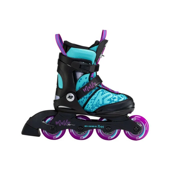 Mit dem neuen Marlee Pro bietet K2 den Kindern einen spielend leichten Einstieg in die Welt der Inlineskates. Der bequeme Oberschuh bietet viel Stabilität und ein sicheres Gefühl beim Fahren. Dieser Kinder-Skate ist über Sechs Größen verstellbar, damit ist man bestens ausgestattet, sollten die Füße doch schneller wachsen als geplant. Die Kombination aus 72mm Rollen in 80a und Abec 3 Kugellager sorgt für ein tolles Fahrgefühl und viel Komfort. Für ein Plus an Sicherheit sorgen die beiliegende Bremse und die Schnellschnürung.
