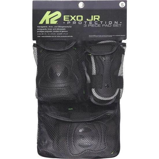 Das umfangreiche Schützer-Set »Exo Pad Jr.« von K2 bietet Skateboardern und Inline-Skatern ein Maximum an Schutz und zugleich hohen Komfort. Das Schützer-Set besteht aus zwei Knieschützern, zwei Ellbogenschonern sowie zwei Handgelenkschützern, die dank elastischer Straps mit D-Ring schnell und einfach angelegt sind. Mit diesem Set sind Jungen und Mädchen bei ihrer Lieblings-Rollsportart stets bestens geschützt und genießen dank des atmungsaktiven und feuchtigkeitstransportierenden Mesh-Futters an der Innenseite angenehmen Tragekomfort, selbst wenn es auf dem Asphalt heiß zur Sache geht.<br /><ul><li>Komplettes Schoner-Set in Kindergröße</li><li>2 Knieschoner</li><li>2 Ellbogenschützer</li><li>2 Handgelenkschoner</li><li>Mesh-Futter für Kühlung und Trockenheit</li><li>K2</li></ul>