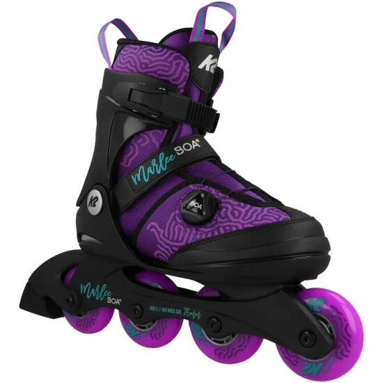 Die Inliner MARLEE BOA” aus dem Hause K2 begeistern nicht nur mit ihrem tollen Aussehen, sondern sind dank der Kombination aus der K2 Original Softboot-Technologie und dem Boa® Verschlusssystem sowohl atmungsaktiv als auch passgenau. Mit dem Klettverschluss und der individuell regulierbaren Schnalle können die Inliner noch besser an die Füße angepasst werden, sodass für eine hohe Stabilität gesorgt ist. Am Schaft befinden sich zwei praktische Anziehschlaufen, die auch zum Tragen der Inliner verwendet werden können.Details:- Kombination aus K2 Original Softboot und Boa® Verschlusssystem für einen optimalen Sitz und hohe Stabilität- zusätzlicher Klettverschluss und individuell regulierbare Schnalle- lange Nutzung dank der 5 einstellbaren Größen- 2 Anziehschlaufen am Schaft- gepolsterter Schaftbereich- verstärkte Zehenpartie- Bremse hintenMaterial: – Obermaterial: Textil Kunststoff- Futter: Textil- Decksohle: Textil”