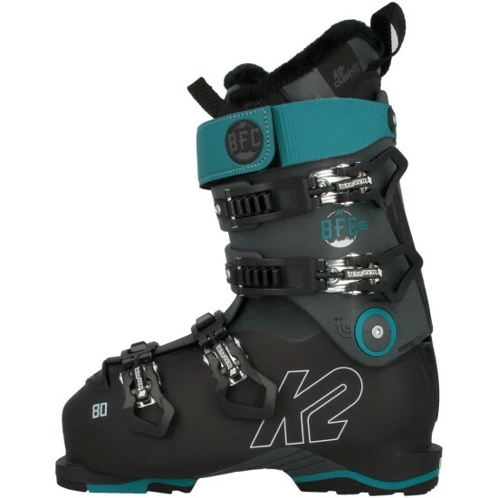 BFC, das steht für „Build For Comfort“ – Für besonderen Komfort gefertigt. Dieses Modell zeichnet sich durch eine exzellente Passform und durchdachte Technologien aus. Die BFC W 80 sind weiche Boots (Flex 80) und dadurch sowohl für Anfänger, als auch für Fortgeschrittene Skifahrerinnen geeignet. Die äußere Schicht besteht aus dem besonders leichten Powerlite Shell, welche aus vier unterschiedlich steifen TPU-Schalen zusammengesetzt ist. Dank diesem Material hast du einen der leichtesten Skischuhe seiner Klasse bei unveränderter Dynamik und Agilität auf der Piste. Geschlossen werden die Skischuhe mit vier individuell und unabhängig voneinander einstellbaren Schnappverschlüssen, dem K2 eigenen Hands Free Entry. So kommst du leicht in die Boots und kannst sie bequem wieder ausziehen.
