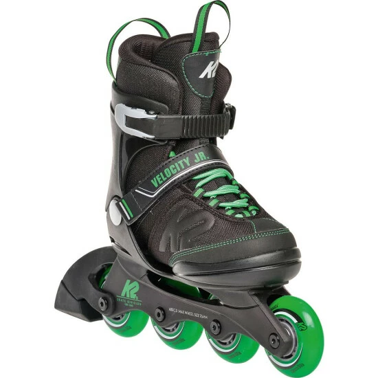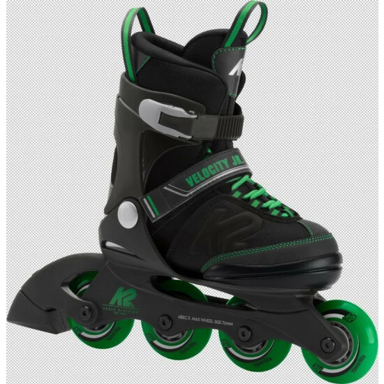 Der „Velocity Jr.“ kann um fünf Größen verstellt werden und wächst somit parallel mit den Füßen ihres Kindes. Der K2-Softboot bietet eine sehr gute Passform und eine gute Stabilität, die den Fahrspaß erhöhen und somit die Nerven der Eltern schonen. Dank dem niedrigen Schwerpunkt fällt es Kindern leicht, das Gleichgewicht zu halten. Verschließbar ist der Inline Skate mit einer traditionellen Schnürung, einer Ratsche und einem Klettverschluss.Details:- um fünf Größen verstellbar- sehr gute Passform- gute Stabilität- Schiene auch für unebene Flächen geeignet- 76 mm Rollengröße- ABEC 3-Kugellager- Verschluss durch Schnürung, Ratsche und KlettverschlussObermaterial: Sonstiges Material, TextilFutter: TextilLaufsohle: TextilDecksohle: Sonstiges Material